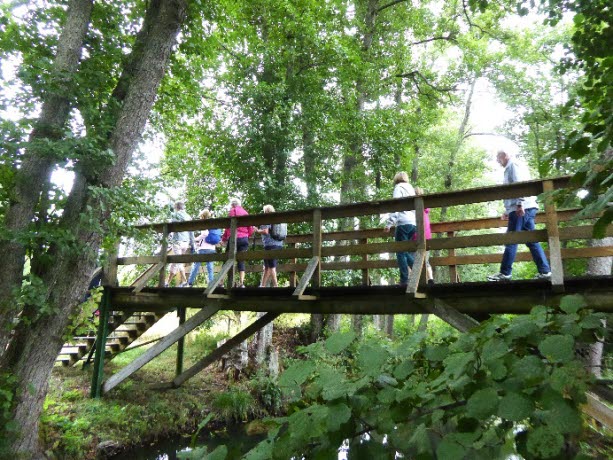 Inte bara på stiga, stockar och stenar, utan även över bron nära Sigurdsristningen.