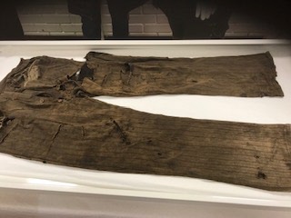 Ett par arbetarbyxor helt unika som hittades bakom skorstenen när det renoverade Järnbergska restaurangen, byxorna är i gott skick och dateras till 1800-talet.