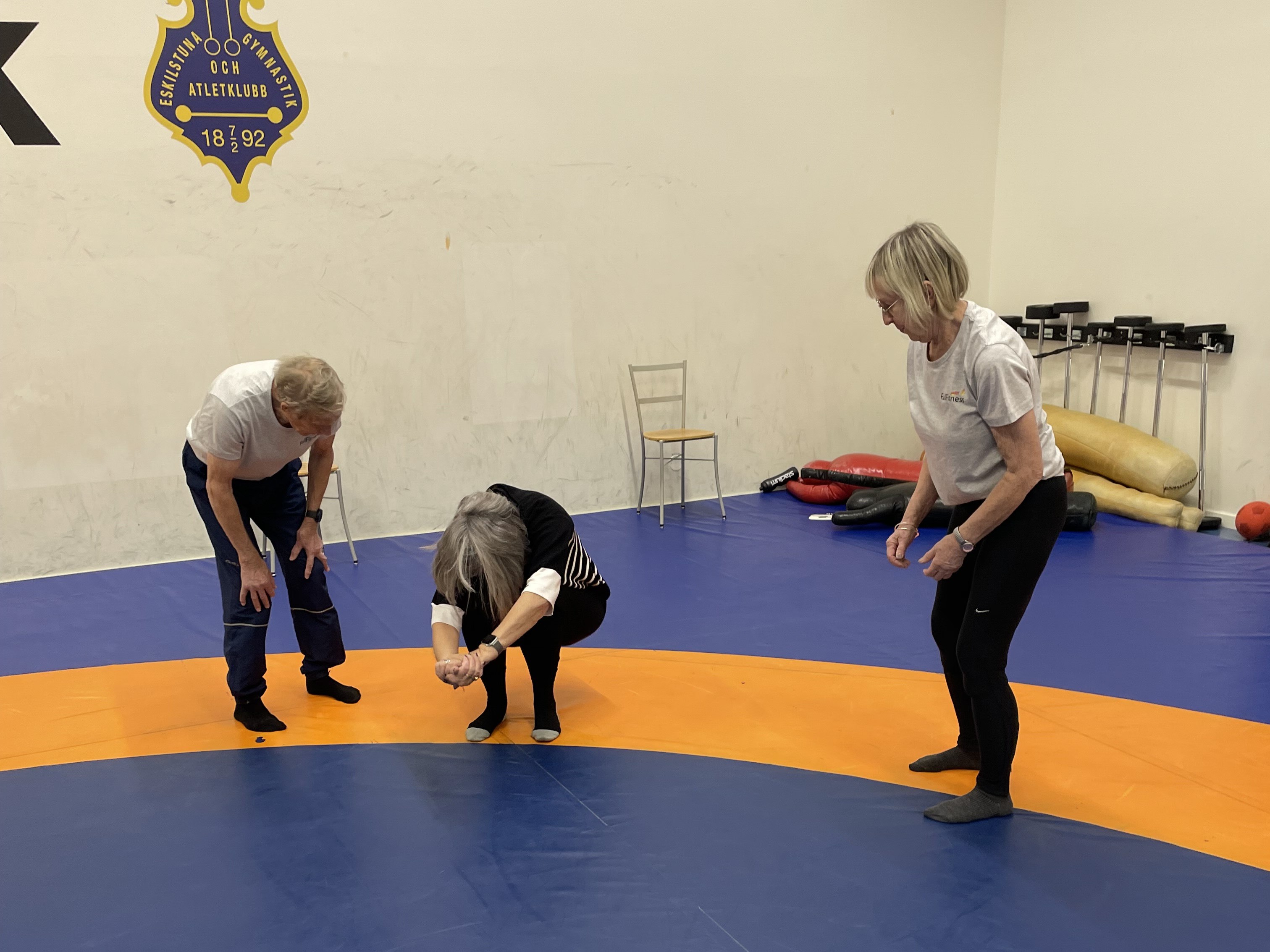 Under åtta pass har 11 seniorer tränat balans, styrka och fallteknik i Munktellarenans Budohall. Programmet är framtaget av FoU i Sörmland.