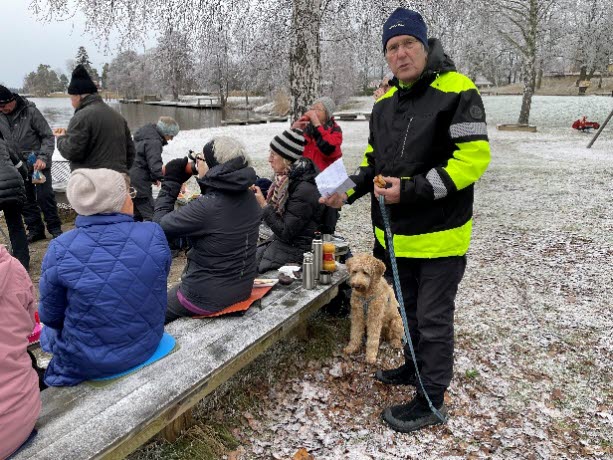 Två av dagens vandrare var nybörjare, i alla fall nästan. Claes-Göran deltog ”på prov” förra veckan. Den här gången tog han även med sig Annika och hunden Pepsi. ”Det är så trevligt. Man kommer ut på platser man inte riktigt visste fanns. Vi kommer tillbaka, lovade han.