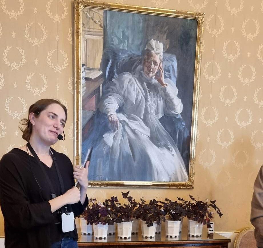 Där tog guiden Sofia oss runt i några av de vackra rummen samtidigt som hon berättade om prins Eugen och hans livsverk på Waldemarsudde. Konstsamlingen som prinsen samlade i sextio år består av 7500 konstverk. Prinsen hade också ett stort intresse för blommor. Guidningen avslutades ute där vi fick höra om några av de många skulpturer som pryder parken. Alla skulpturer är inköpta av prins Eugen. Vid prinsens död 1947 testamenterades allt till svenska staten.
