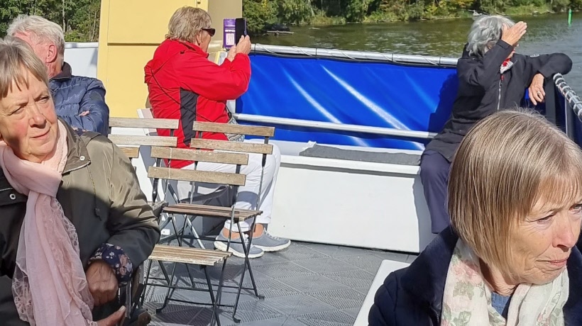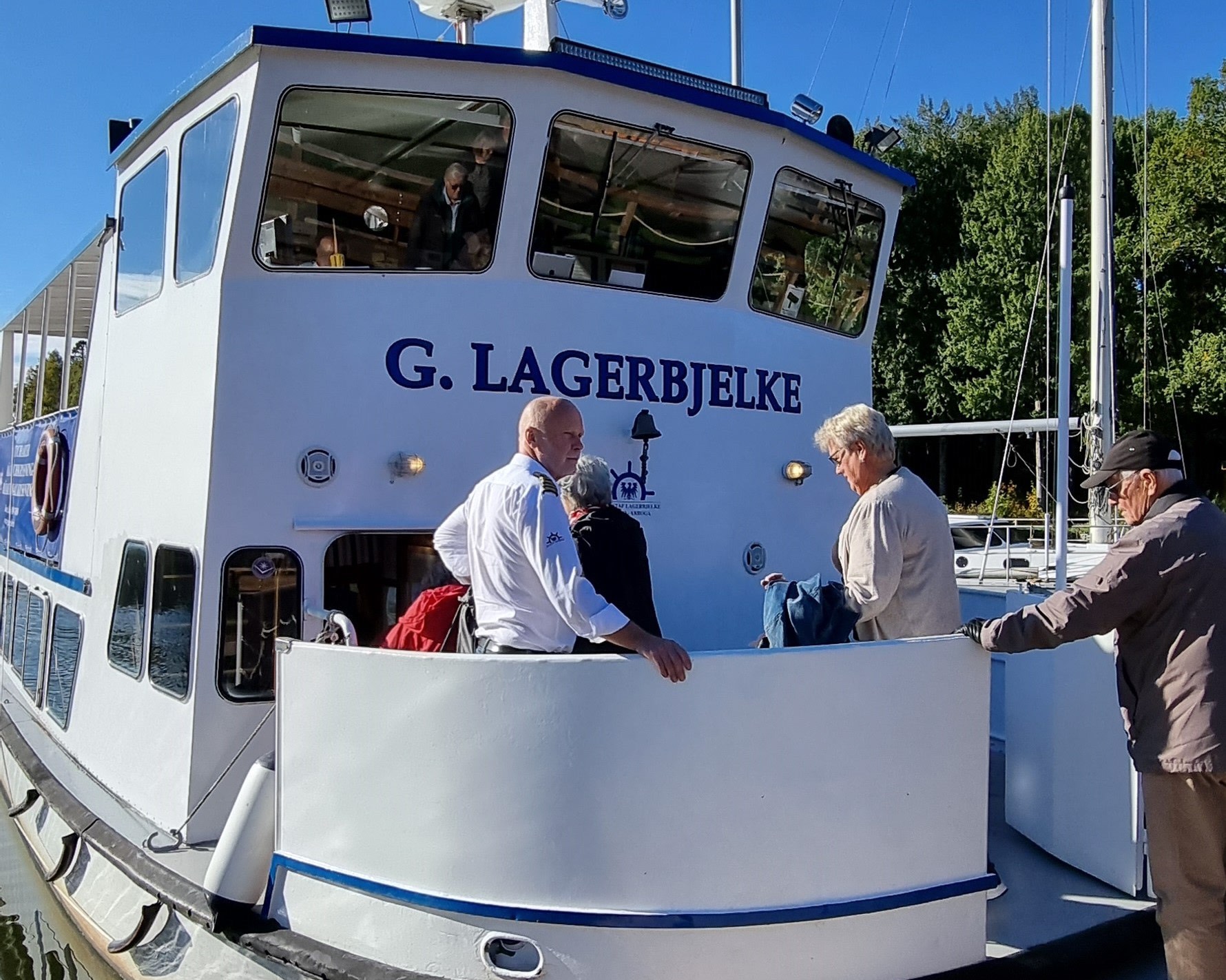 Drygt 40 förväntansfulla resenärer från Malmköping och Flen åkte med Forssjöbuss till Hjälmare docka. Där väntade båten M/S Gustaf Lagerbjelke.