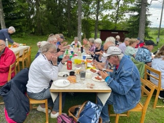 Grillning, tipspromenad och lotteri stod på programet. Kalle och Anja underhöll oss med välkända sommarvisor och en och annan liten historia däremellan. Vi blev ca 35 personer som samlades en stund för lite trevlig samvaro. Själv hade jag gärna stannat lite längre men som genom ett trollslag började man plocka in stolar och så var det dags för hemfärd. Tiden går fort när man har roligt!