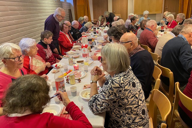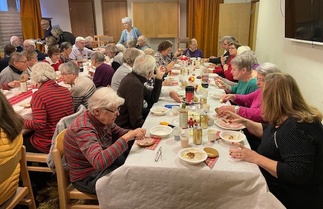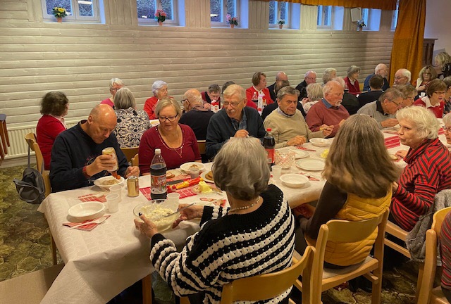 Vi var sextio grötsugna seniorer som hade samlats för att äta årets grötlunch. av sorlet att dömma i salen, så hade alla en trevlig stund.