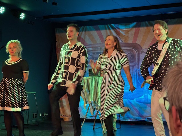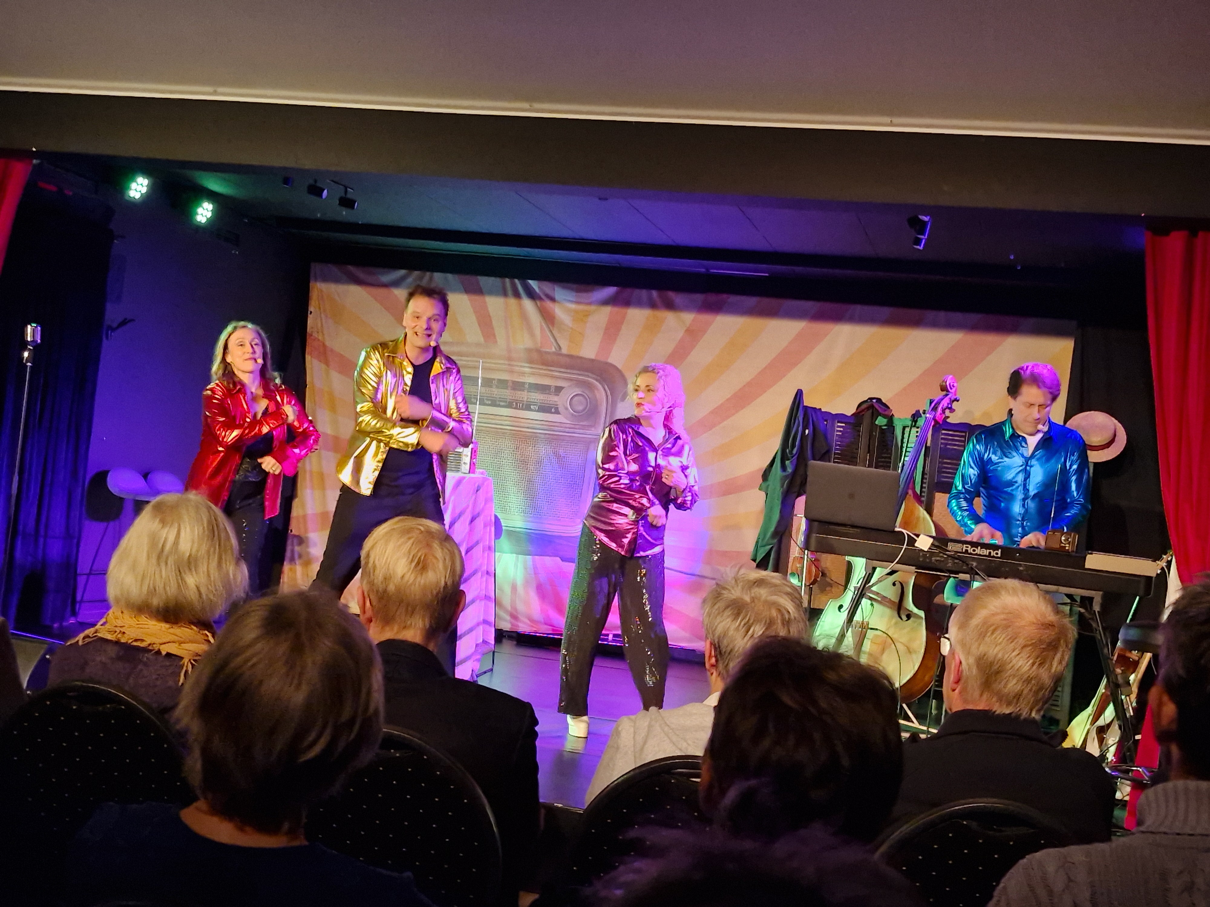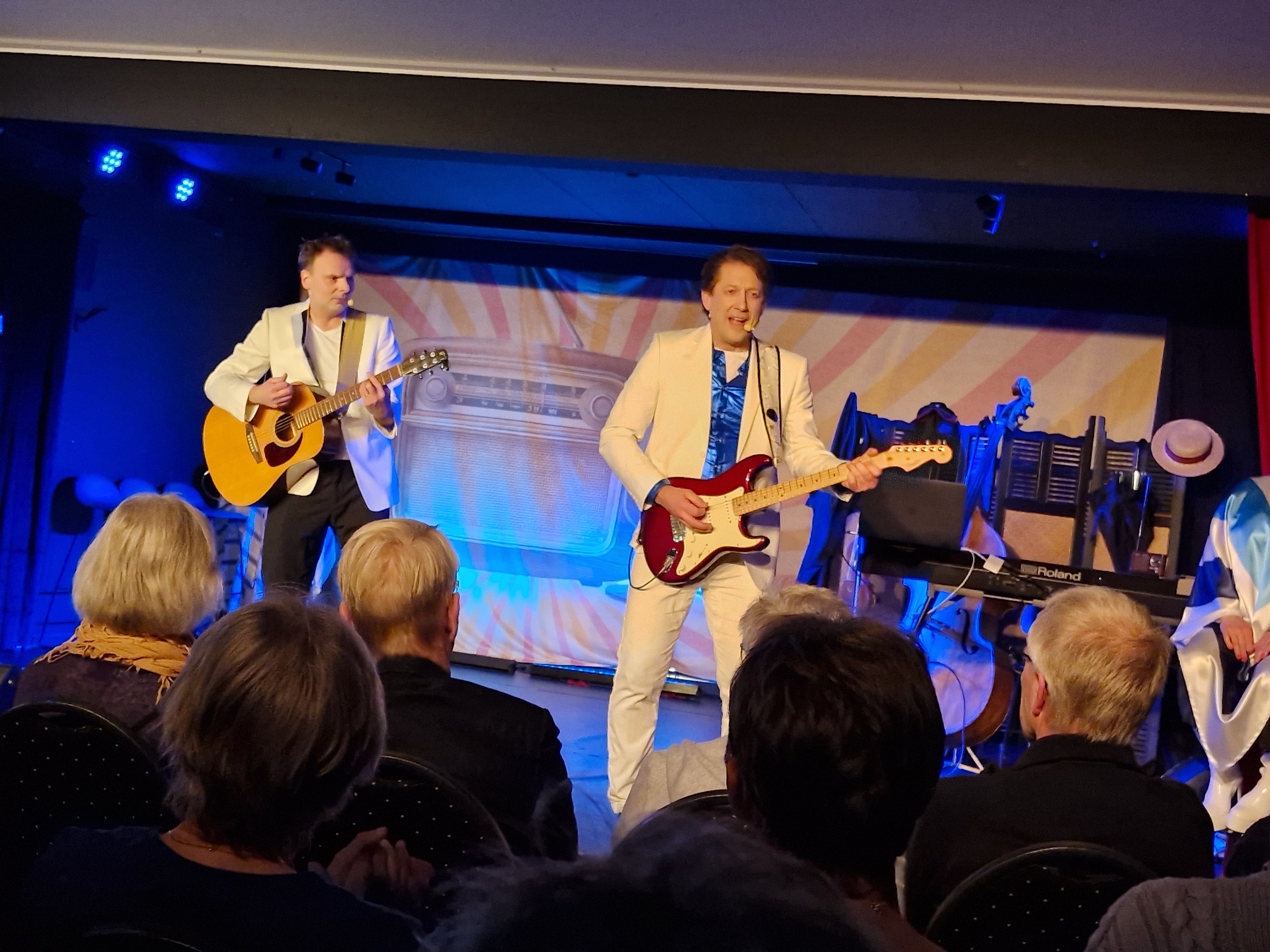 Med bussen fullsatt till sista plats, bar det av till Vingåkers Folkets Park. Efter att vi ätit en god måltid, bänkade vi oss framför scenen. Där bjöd Niklas, Mia, Thomas och Johanna oss på två timmar med historien om radions uppkomst och utveckling från 1920-talet och fram till nutid. Musik från varje decenium kantades av historiska och humoristiska inslag.