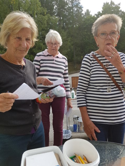 Trots hotande grå skyar genomfördes dagens tipspromenad i strålande sol. Femton personer deltog i tipsandet - och ytterligare några passade på att umgås och att njuta av fikat. Kerstin Johansson prickade in en tolva och vann tack vare bäst svar på skiljefrågan. Även Gösta Johansson lyckades nämligen även han uppnå tolv rätt. Ny omgång nästa torsdag. Välkomna!