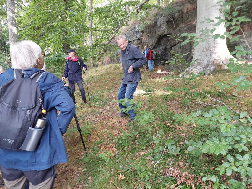 33 glada seniorer var med och vandra på Södertuna slottspark, som vanligtvis besöks på våren. Denna gång blev det en höstvandring. Har trädens blad skiftat färg från grönt till olika nyanser av gult och rött. Eller hur långt hade hösten kommit, var marken täckt av löv.
