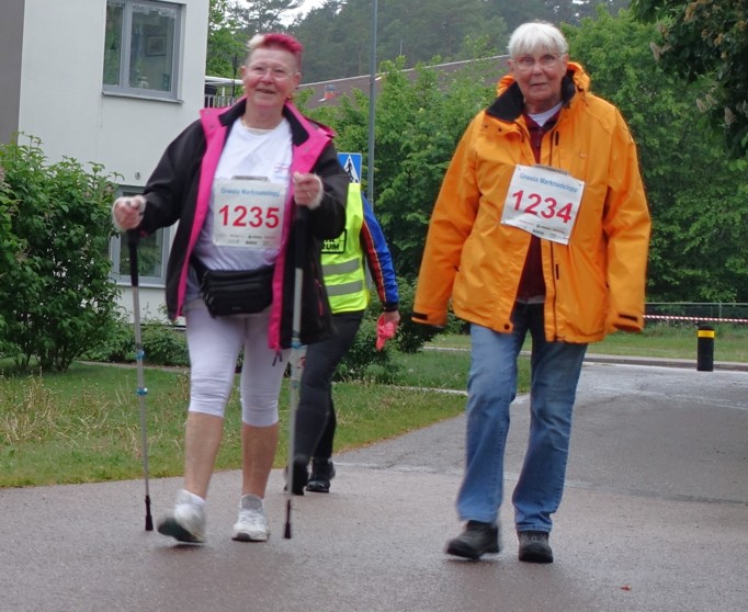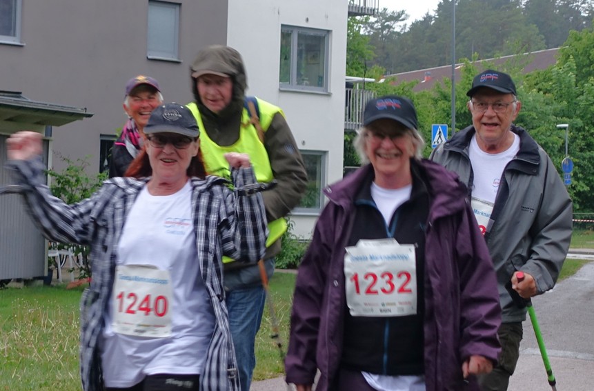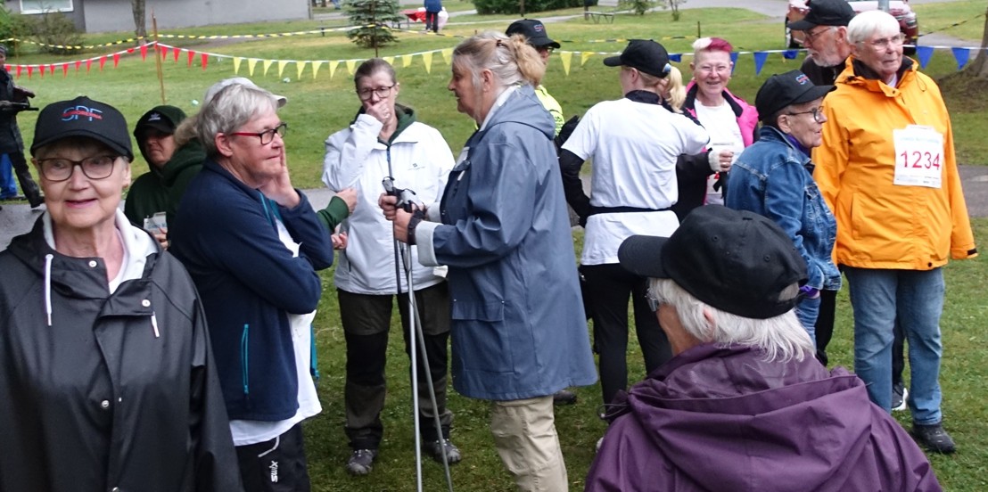 Regnet strilade större delen av dagen, men när det var dags för start tog nederbörden paus. Aningen kulet väder var det för alla de Gnestabor som hejade längs banorna, men skönt för de tävlande som föredrog svalka framför hetta. 25 tappra SPF:are deltog – springande, lunkande eller stavgående.