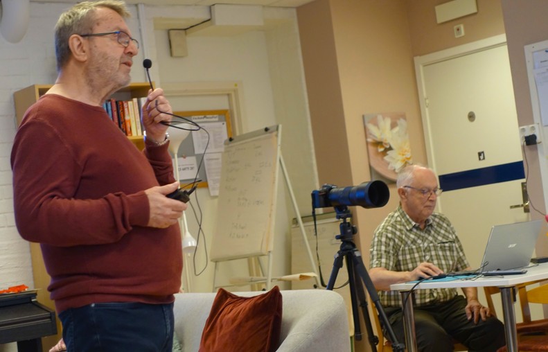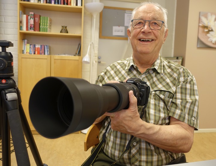 Gunnar började med att avslöja lite av fågelplåtandets hemligheter: ställ skärpan i fågelns öga. Optimalt är om ljuset faller så att ögat glittrar). Många bilder tar han från ett gömsle, ett litet tält, där bara objektivet sticker ut. Han plåtar med en Nikon D7500 bestyckad med en 150-600 mm telezoom. Inga dåliga grejer. Men det krävs bra mycket mer än en förstklassig utrustning för att ta bilder i Gunnars klass. (Det kan författaren till dessa rader intyga som gjort åtskilliga misslyckade försök).