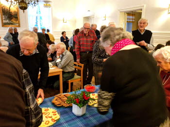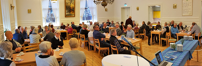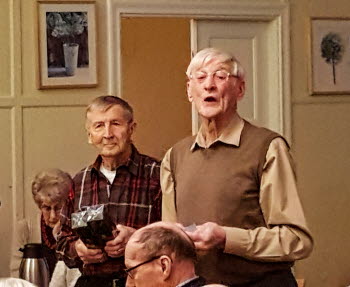 Därefter bjöds på läcker smörgåstårta följt av kaffe med hembakad rulltårta. Sedan vidtog årsmötesförhandlingarna. Styrelsen beviljades ansvarsfrihet och Sigge Sanden fick fortsatt förtroende som ordförande ännu ett år. Avgående styrelsemedlemmar avtackades. Ett stort tack riktades också till Knut Hedin som valt att dra sig tillbaka. Han var med och bildade föreningen och har under dessa 20 år varit ett ankare i föreningen där han bl.a. varit reseansvarig och ordnat med lotterierna.