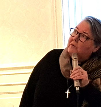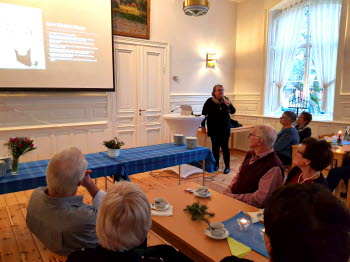Gunilla hälsade ca sextio personer välkomna och vände sig särskilt till kyrkoherde Karin Wibom. Hon var inbjuden att kåsera under rubriken "I hövve på en präst."