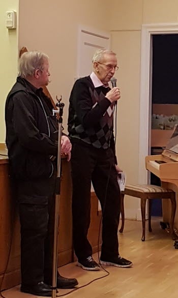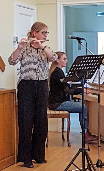 För underhållningen stod kantorerna Ing-Lill Sjönneby och Helene Fredriksson. De bjöd på ett härligt program med sång och musik. Ur repertoaren kan nämnas Saint Saëns "Svanen" som framfördes på flöjt av Inga-Lill Sjönneby med ackompanjemang av Helene på piano. Helene valde att spela två kompositioner av Rieding på fiol med pianoackompanjemang av Inga-Lill. Det bjöds också på visor. Helene sjöng Mikael Wies "Mitt hjärtas fågel". Inga-Lill spelade gitarr och sjöng" Min astrakan," en inte så ofta framförd sång från "Kristina från Duvemåla". Sista numret var "Du hemmets jord", även den med gitarrackompanjemang.