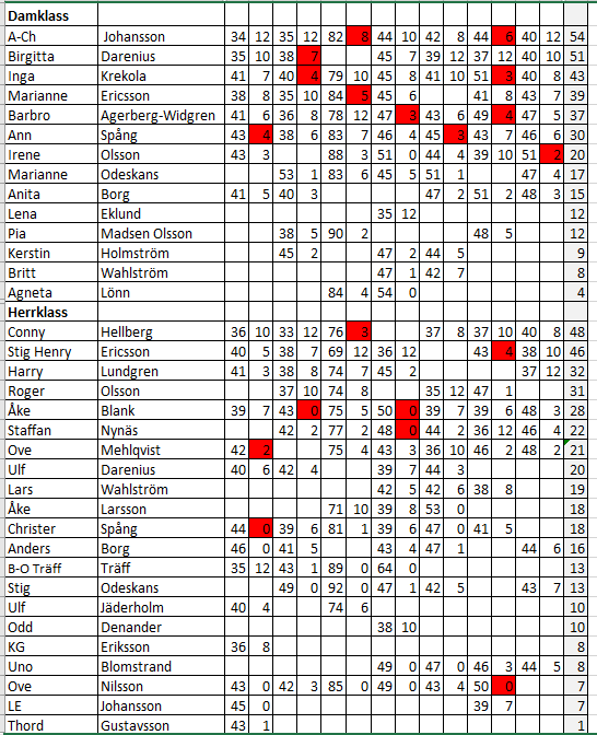 har på resp. bana. Resultaten samlas in vid varje tillfälle och redovisas på
