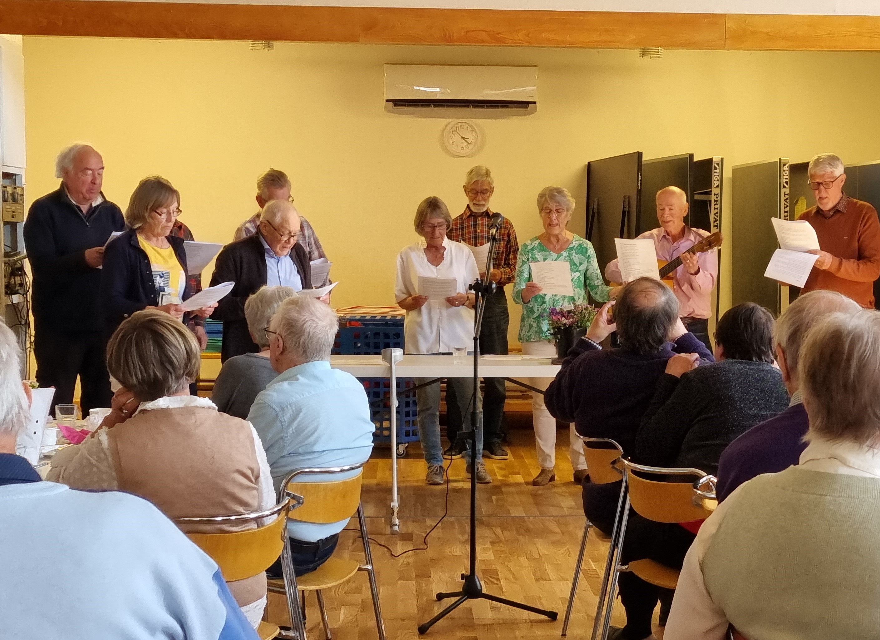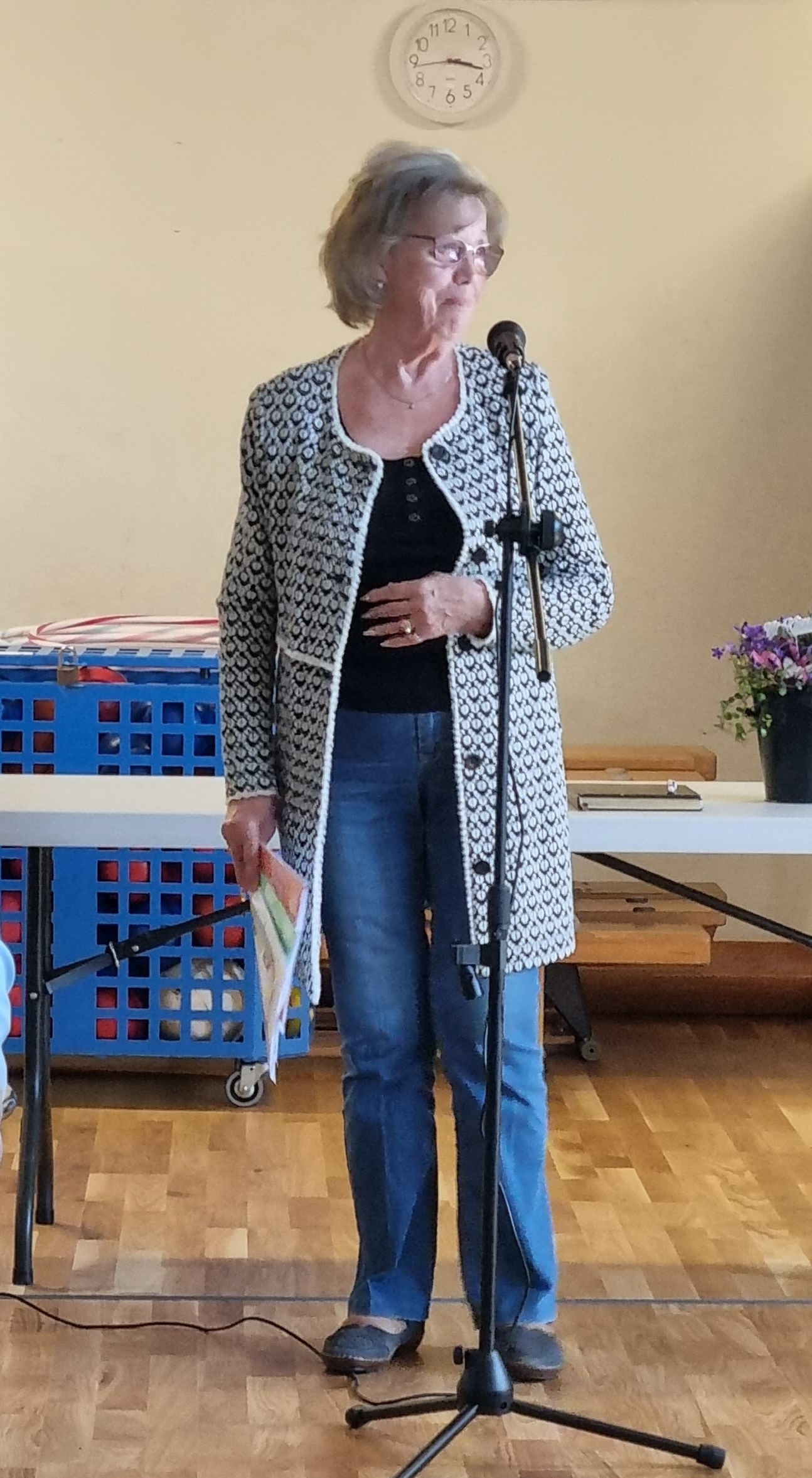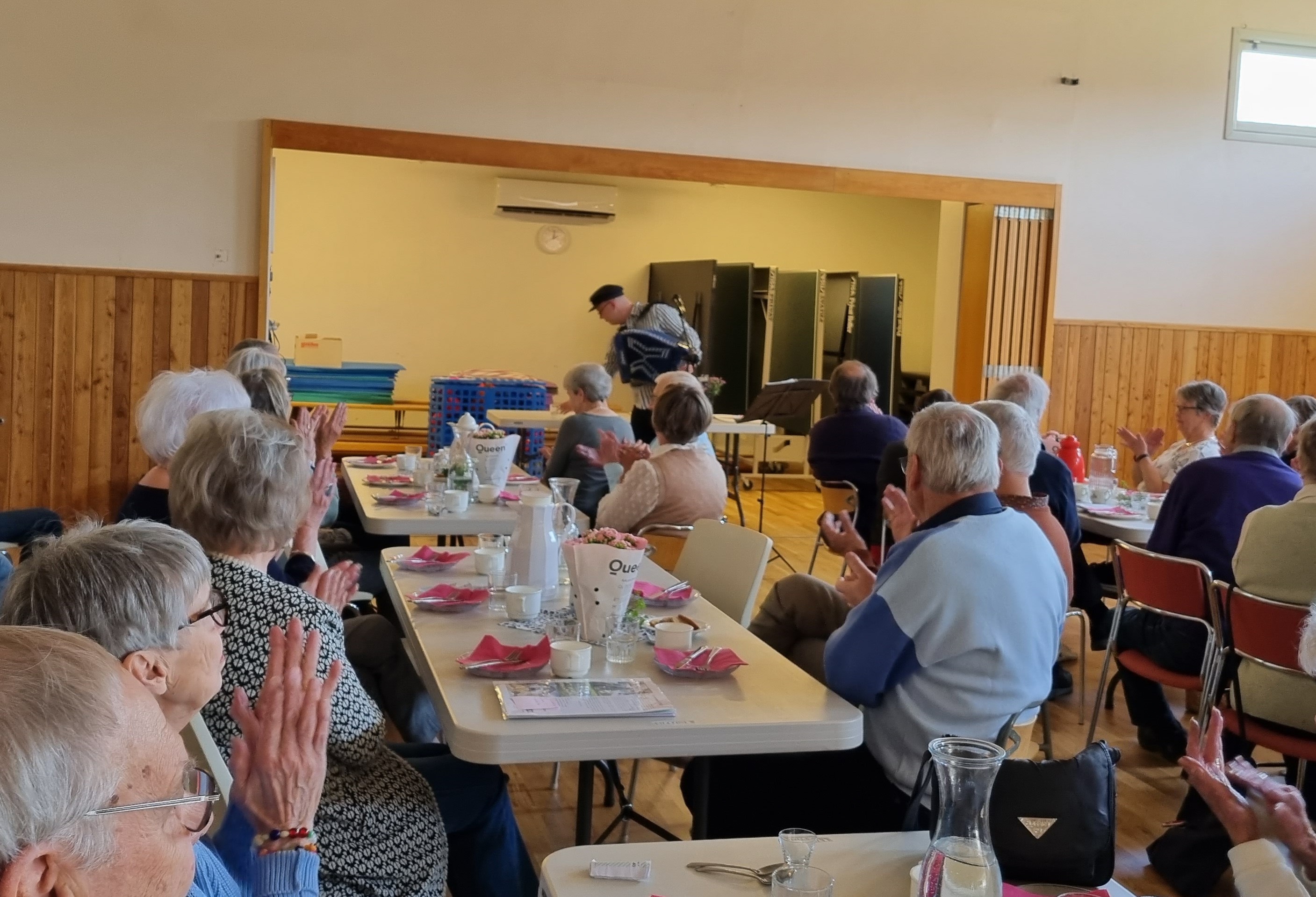 Måndagen den 9 maj hälsade Inger Frisk oss välkomna till vårt sista månadsmöte på Dambroängen, from september är vi tillbaka i Tuna församlingshem. Dagens underhållare var Kaj Lärka som under rubriken ”Bondkomik i hambotakt” sjöng visor av bl a Povel Rammel och Skånska Lasse.