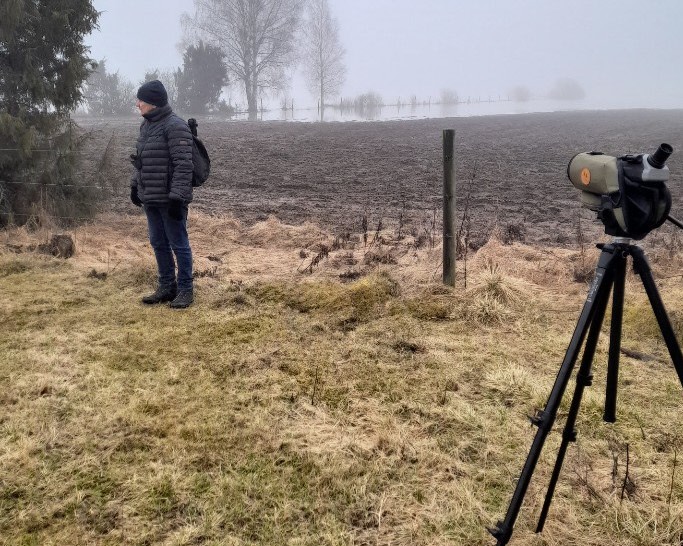 Vår eller? I disigt väder har iallafall vårens fågelskådning startat vid Skåra naturreservat.