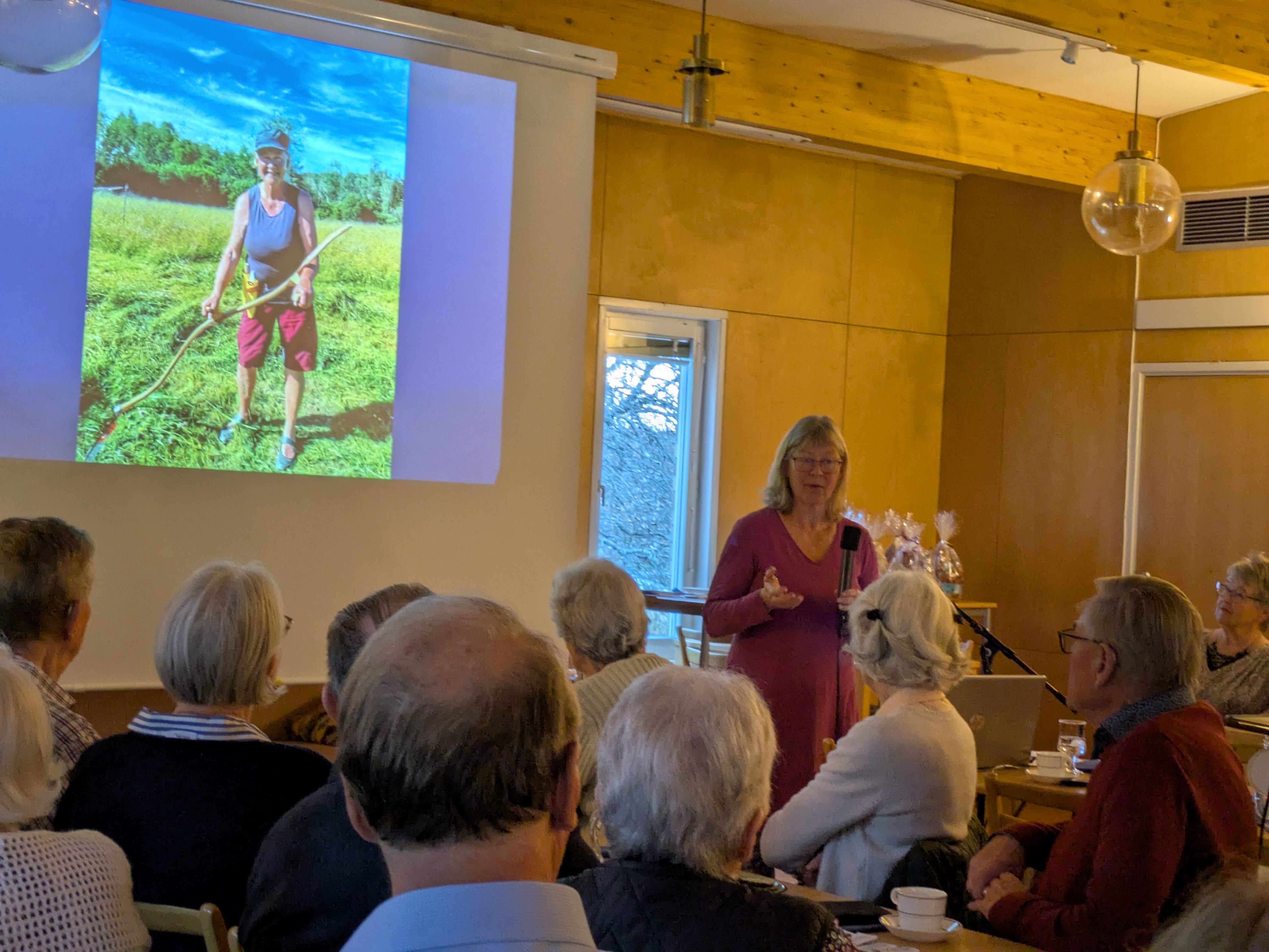 Vi var drygt 80 medlemmar som samlats i Tuna Församlingshem. Lena Näslund, känd journalist från Naturmorgon i P1 stod för dagens underhållning.