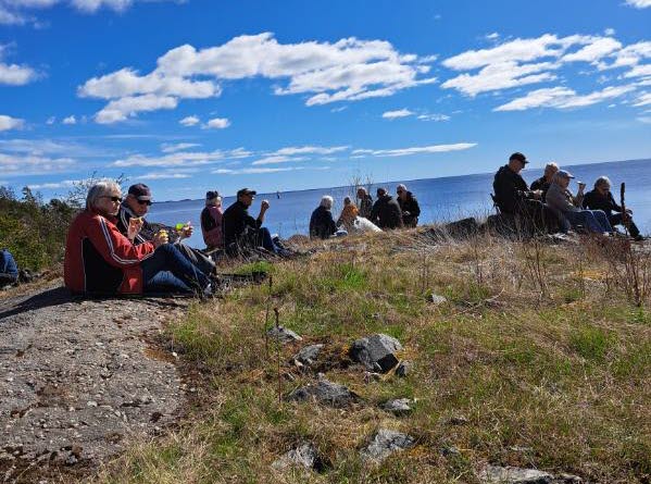 På Långholmen gavs information om fyrarna som kom i vårt blickfång och rasten gav en vidunderlig utsikt över ett soligt Bråviken.