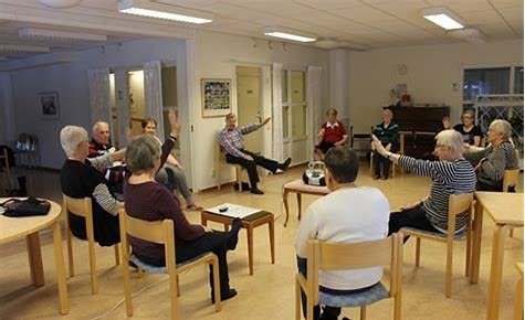 Vi dricker kaffe, samtalar och spelar olika spel och har en trevlig stund.