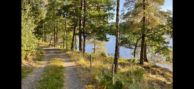 Vandring cirka 5 km, mestadels på grusvägar. Halvvägs stannar vi för att njuta av medhavd matsäck och utsikten mot Långdunkers Herrgård.