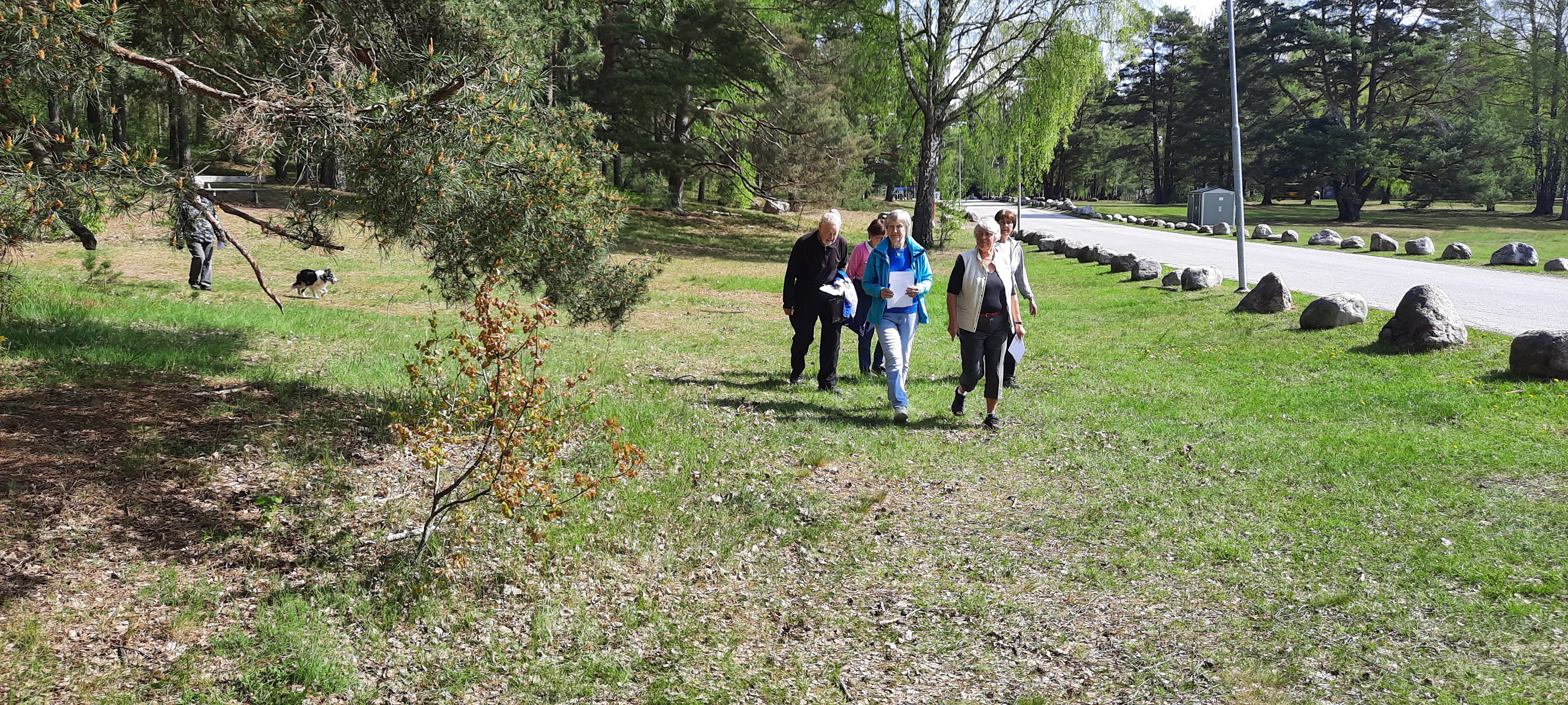 Torsdagens vandring ”Lundbyrundan” lockade 7 deltagare . Vädret bjöd på solsken och blåst. Vandrarna ansåg att den starka blåsten bjöd mest på motvind! Medhavd matsäck intogs efter trappklättring vid Lundby gravfält.