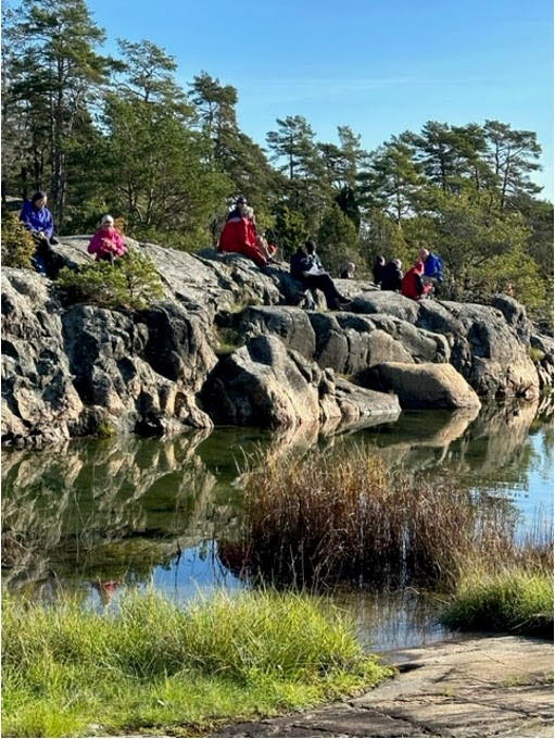 Efter fikastunden gick vi runt Stora Krokholmen för att sedan följa stigarna tillbaka till bilarna vid Äspskär. Vi var 18 seniorer som fick uppleva en riktigt fin brittsommardag.