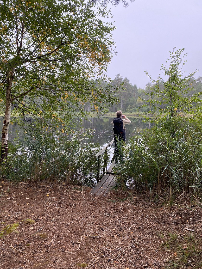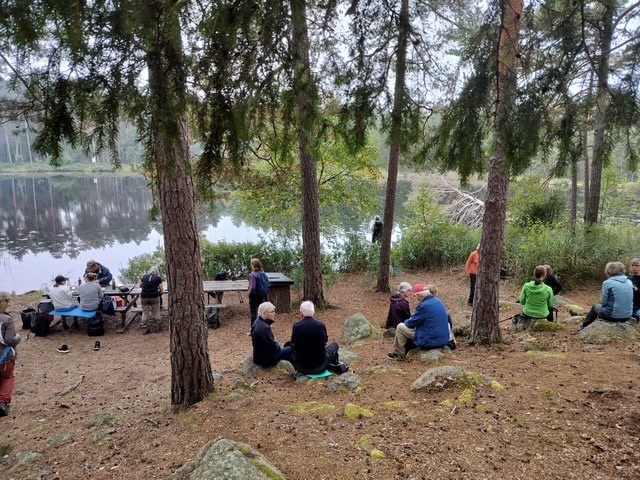 Efter att vi samlats på Träffen åkte vi iväg i sex bilar. Vi var 19 st som vandrade den 9 september. Vädret var dimmigt och varmt. Det var också lite halt på stigarna. Vi följde Sörmlandsleden så gott som hela tiden.