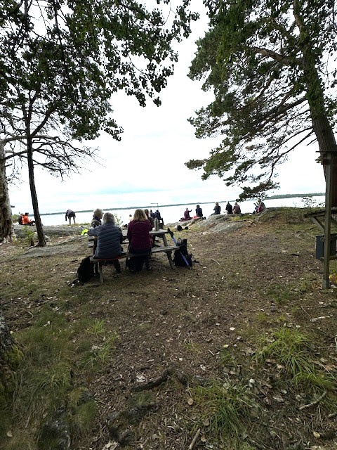 En solig och skön höstdag i slutet av augusti 2025 samlades 22 vandrare för att gå upp på Nävekvarns klint. Vi träffades som vanligt vid Träffen kl. 09.00 för att sedan samåka till startplatsen för vandringen på parkeringen för naturreservatet Nävekvarns klint.