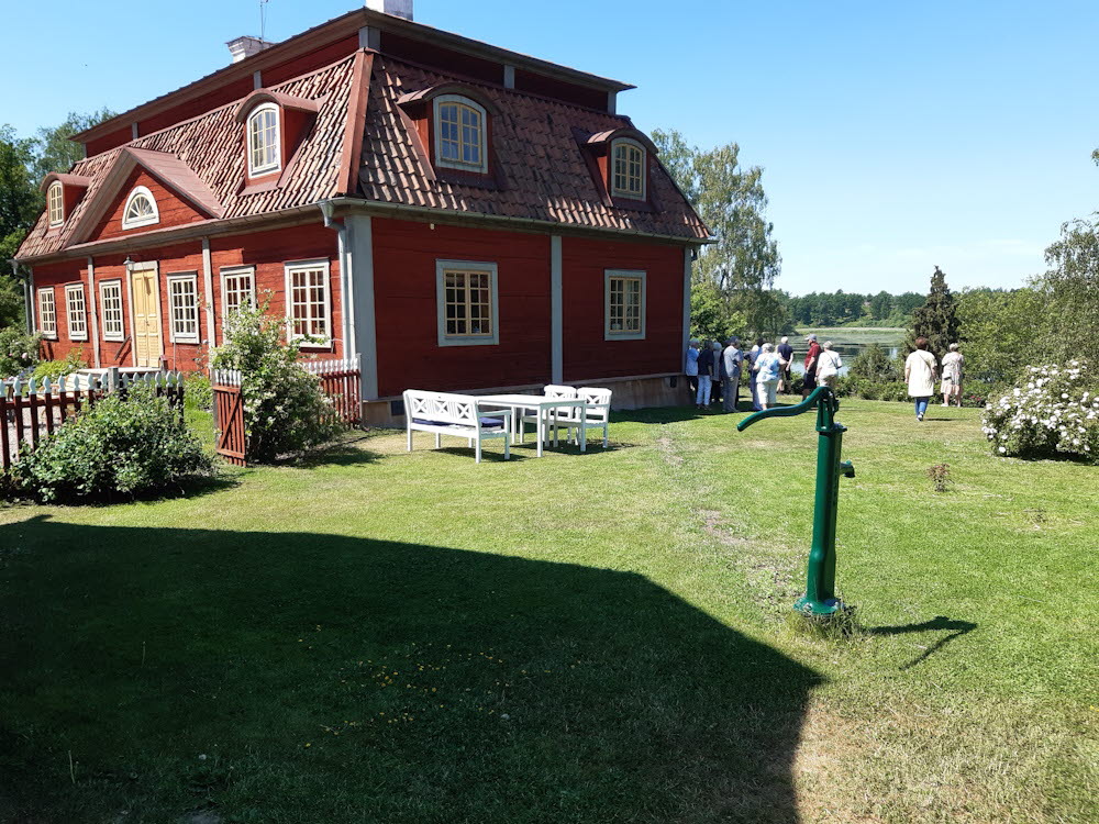 Nästa stopp var Värskäl i Bettna socken och vi trodde alla att vi kom till en gammal gård, som var renoverad. Gården ligger med utsikt över sjön Långhalsen. Här åt vi lunch och när vi var mätta och belåtna berättade ägaren Pillan om gården. Hon hade köpt tomten 1995 och ville bygga en gård som var timrat på samma sätt som på 1600-talet. Hon berättade mycket detaljerat hur arbetet gått till. Väggarnas stockar har drevats med mossa och färgats med 1600-talets rödfärg. Inomhus var paneler, golv och tak handhyvlade, m.m. En mycket driftig kvinna som rådfrågat olika experter och lärt sig gammalt hantverk och gjort mycket av jobbet själv. Hon har verkligen lyckats för Värskäl ger en ganska god bild av hur en mindre Sörmländsk herrgård kunde se ut vid mitten av 1700-talet. Efter denna mycket intressanta upplevelse vände bussen hemåt.