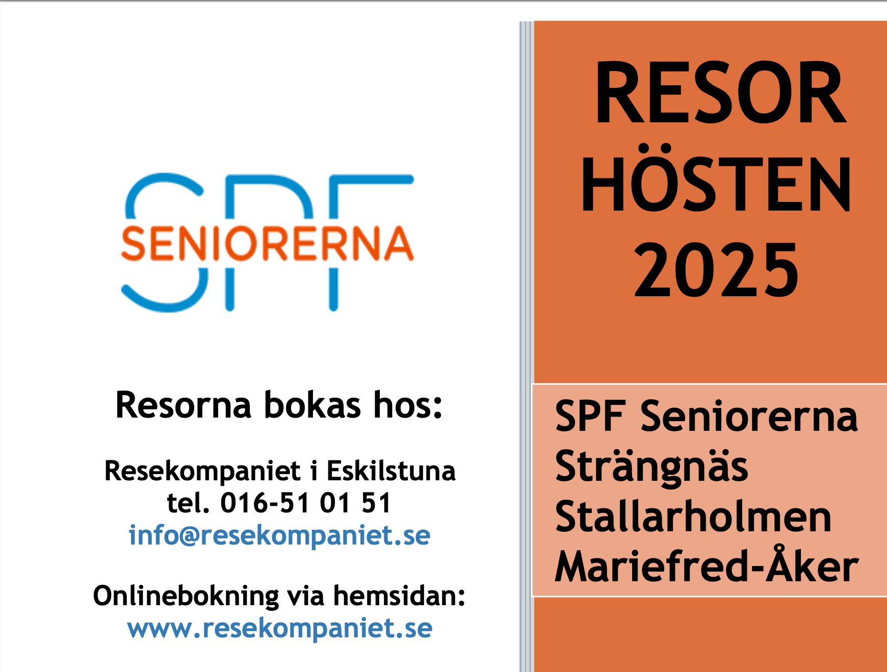 Resekompaniet anordnar resor tillsammans med SPF Stallarholmen och Mariefred-Åker.