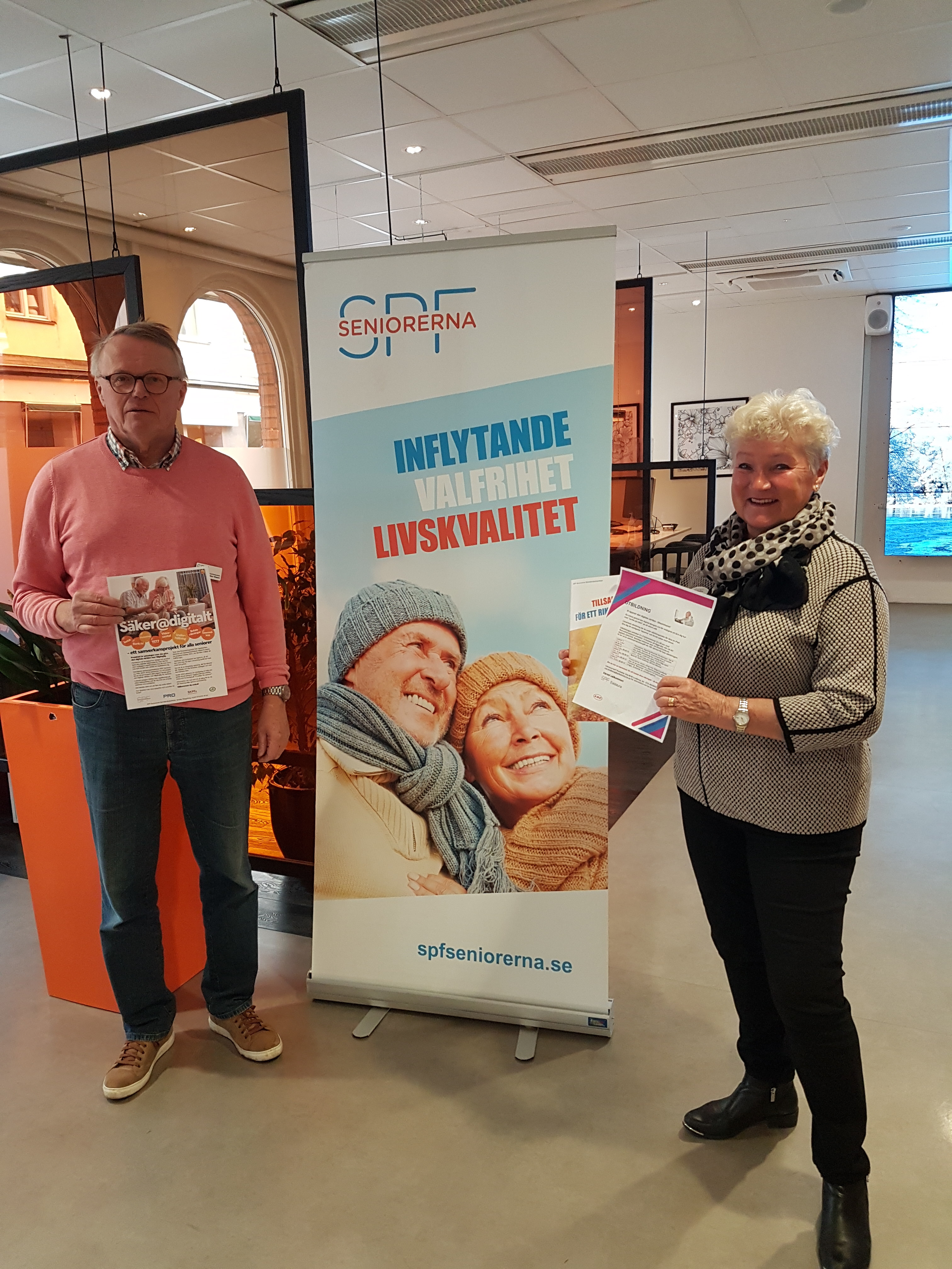 Ulla-Britt Lindberg och Stig-Håkan Nilsson berättar om projektet, där vi seniorer under och trivsamma och lärorika former kan lära oss mer om digitala tjänster som bank-id och swish.