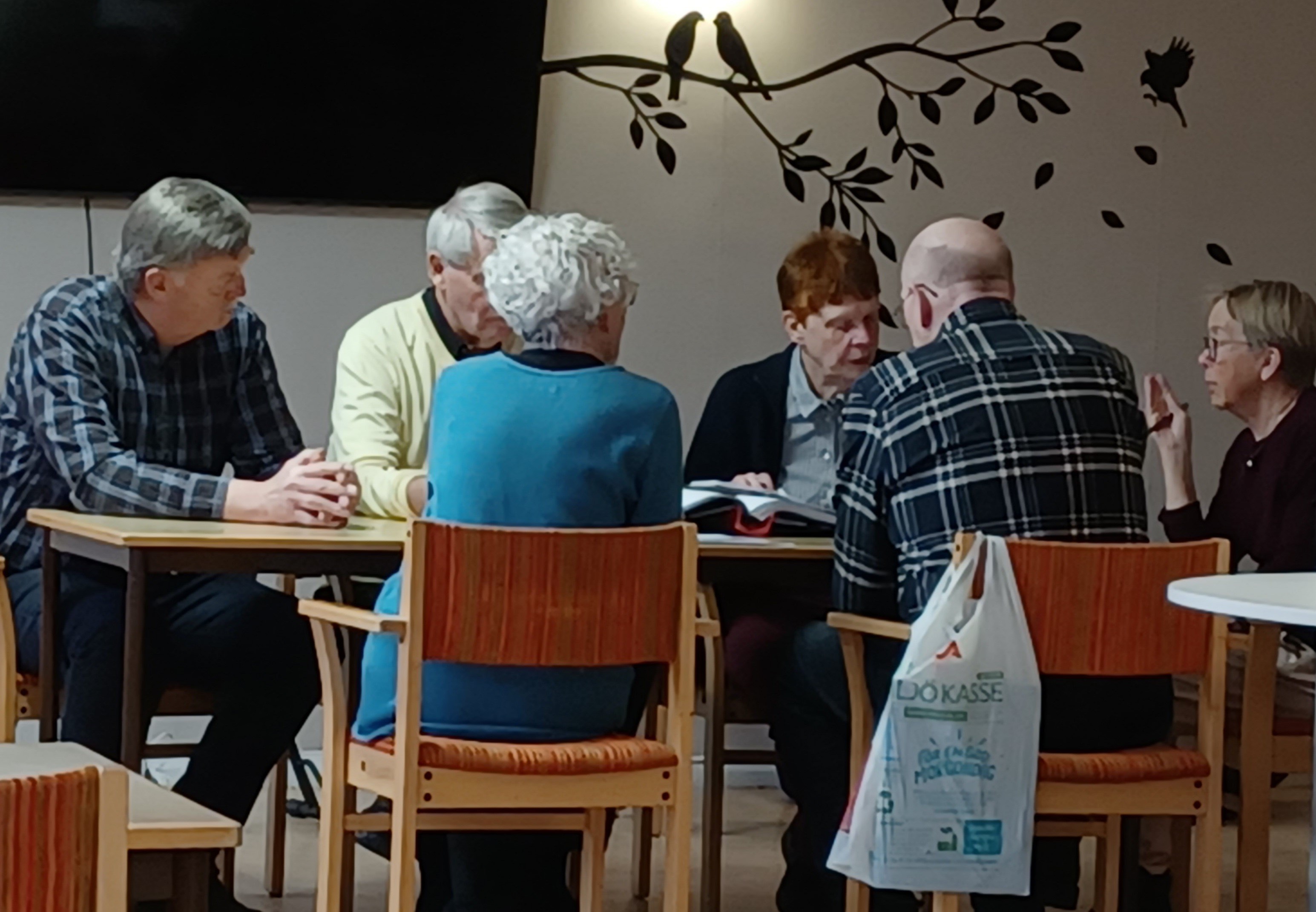 På bilden ser vi den nygamla styrelsen försjunken i konstituerande möte efter årsmötet.