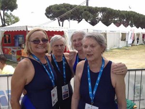 "Eva-Britt och hennes lagkamrater i SK Nautilus inte bara tog guld på medley 4x50 m - de satte också nytt världsrekord för damer 85-89 år med 3:36,21. Över 13 sekunder bättre än japanskornas tidigare rekord!"