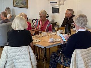 Så var det dags för höstens första månadsträff. Vår vice ordförande Kerstin Ivarsson hälsade oss välkomna och berättade att på våra månadsmöten, förutom kaffe och kaka nu även ingår ett glas vin.