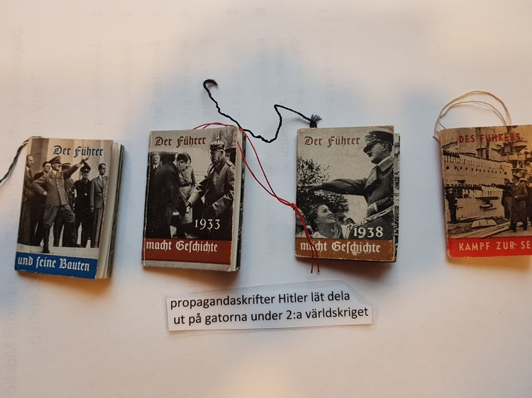 Miniatyrböcker som delades ut som propagandaskrifter på gatorna under andra världskriget.