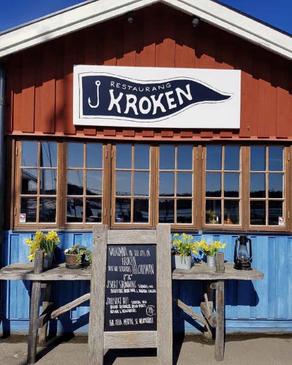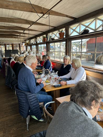 Nåväl, vi samlades på Karlaplan och fick åka buss ned till Nynäshamn. Det vackra odlingslandskapet bredde ut sig när vi närmade. Vi intog en härlig lunch på restaurang Kroken med smörslungad kolja. Den var perfekt!