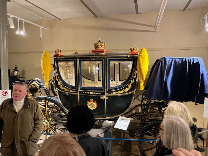 Det är inte bara hästarna som tas om hand utan det gäller även sadlar, seltyg och självfallet alla de vackra vagnarna. Allt är av utsökt kvalitet och vårdas ömt. Sådana här paradvagnar var förr en vanlig gåva kungligheter emellan. Vår guide berättade att president Jeltsin inför sitt statsbesök i Sverige 1997 blev tillfrågad om hur han ville färdas i Stockholm. På Hovstallet bleknade man när man hörde att han minsann ville åka lika fint som tsaren när denne var här 1909. Karossen är bara upphängd på ramen och man såg framför sig hur den skulle tippa runt när den bastanta Jeltsin satte fötterna på trappsteget. Problemet löstes genom att en händig smed tillverkade en domkraft som placerades under karossen medan presidenten tog sig in. Sedan måste smeden kvickt som attan och utan att väcka uppseende skruva bort domkraften. Och så måste proceduren upprepas vid ankomsten. Jeltsin lär ha varit mycket nöjd med det kungliga mottagandet.