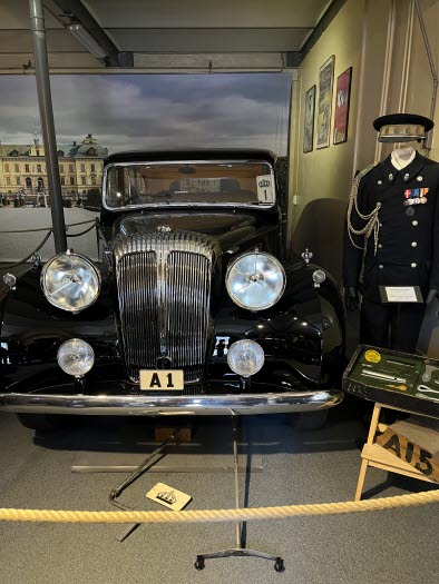 Det finns ett tjugotal bilar i Hovstallet. Den första bilen, en Daimler, anskaffades 1899 av kronprins Gustaf. Den var på 5 (!) hästkrafter, och när man gjorde en provtur på Djurgården orkade den inte riktigt uppför en backe vid Skansen. Kung Oscar II skakade på huvudet och förutspådde att bilen aldrig skulle kunna ersätta hästen.