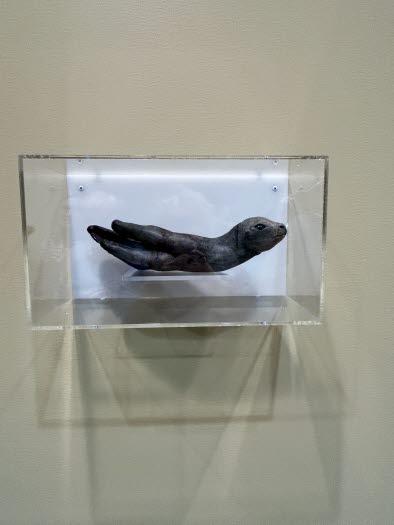 En rörande liten bronsfigur i en glaskub är ”Selkie” av Tilda Lovell. En ”selkie” är en figur inom irländsk och skotsk mytologi, som kan skifta hamn från säl till människa. Den här ser mest ut som en liten kut, en sälunge.