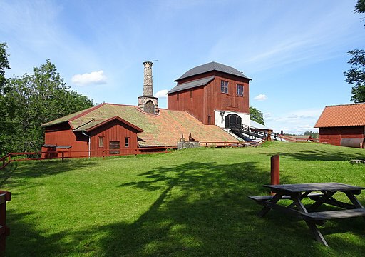 Vi gick in i Kolhuset, som i flera våningar inrymde en väldig masugn. Järnmalmen rostades, alltså upphettades, först i en speciell rostugn, vilket gjorde malmen sprödare. Sedan vräktes den rostade malmen ned i masugnen tillsammans med träkol och kalk. Kalken skulle binda de oönskade delarna i järnmalmen till slagg. Det gick åt enorma mängder träkol. Till slut räckte skogen i närheten inte till, så träkol fick importeras. I botten av masugnen rann det färdiga tackjärnet ut i ett hål och slaggen i ett annat. Om man tänker på att järnet under processen hade en temperatur på upp till 1400 grader och att hyttan var igång dygnet runt kan man föreställa sig hur det var för dem som jobbade där med hettan och dånet från elden.