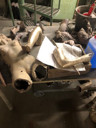Vi runt in i verkstadens olika rum och fick klart för oss hur komplicerat det är att gjuta ett konstverk och hur många moment gjutningen omfattar. Det är inte bara att hälla brons på ett original i gips eller lera. Det skall görs åtskilliga former dessförinnan, i silikon, gips och keramiska material.