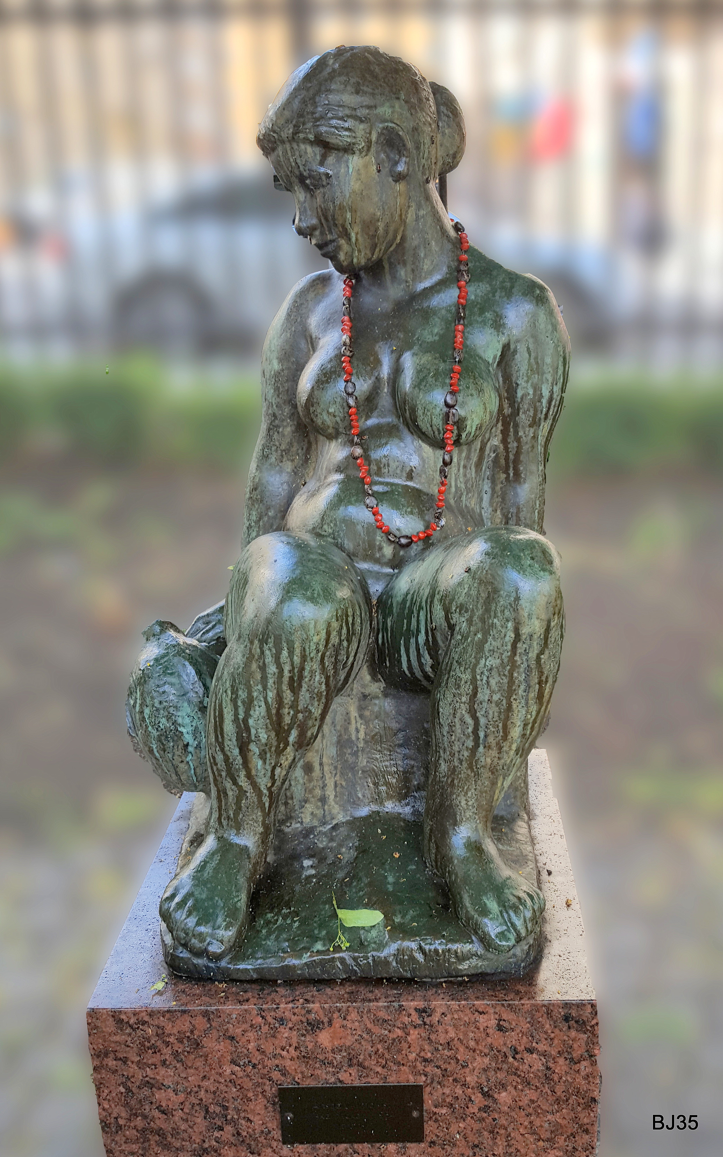 Fiskarflickan är omtyckt, det händer att hon får ett halsband eller någon annan gåva. Kanske är det daghemsbarnen som brukar leka där som ger henne dem? Om man går förbi Fiskarflickan längs staketet mot Hantverkargatan finns också en rabatt som alltid blommar vackert. Den börjar före alla andra på våren med tibasten som blommar på bar kvist. På hösten finns där, förutom all blomprakt, champinjoner som jag visserligen inte plockar men de är en bit natur som jag annars skulle sakna.