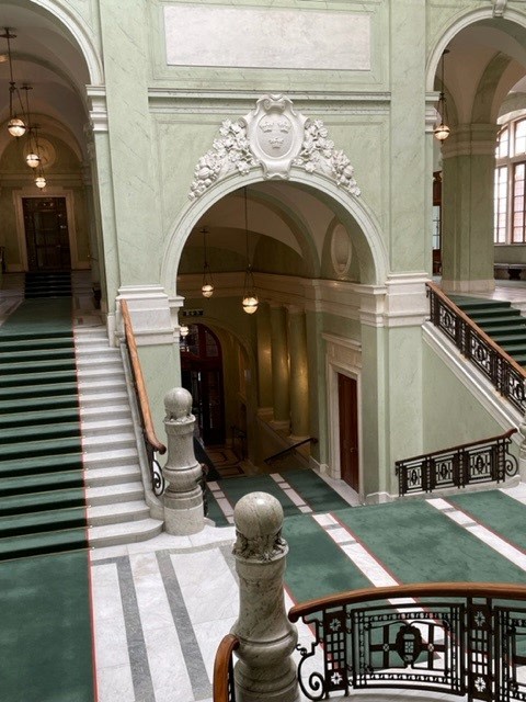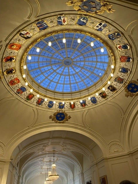 En mycket duktig guide visade och berättade om huset och arbetet som genomförs där. Riksdagshuset, som ursprungligen var ett kombinerat riksdags- och riksbankshus, är byggt på Helgeandsholmen. Huset stod klart för inflyttning 1905.