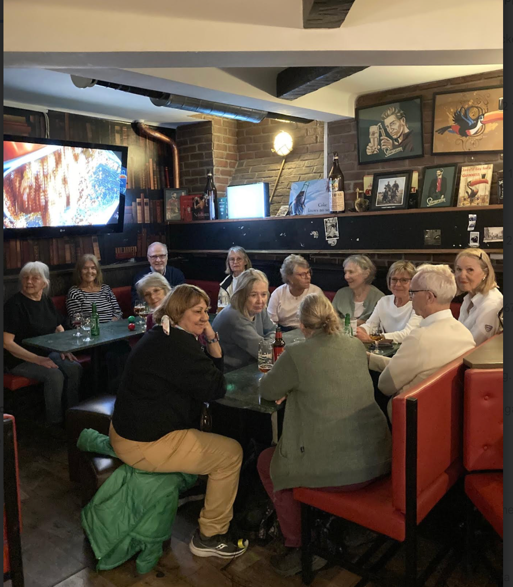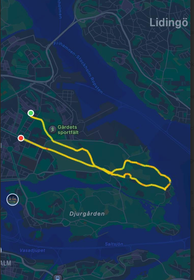 Den sedvanliga fikapausen togs i närheten av Sjöfartsklubben Kaknäs. Med nya krafter tog vi oss tillbaka över Ladugårdsgärdet och avlutade med dryck på Kontoret efter en vandring på 7,9 km.