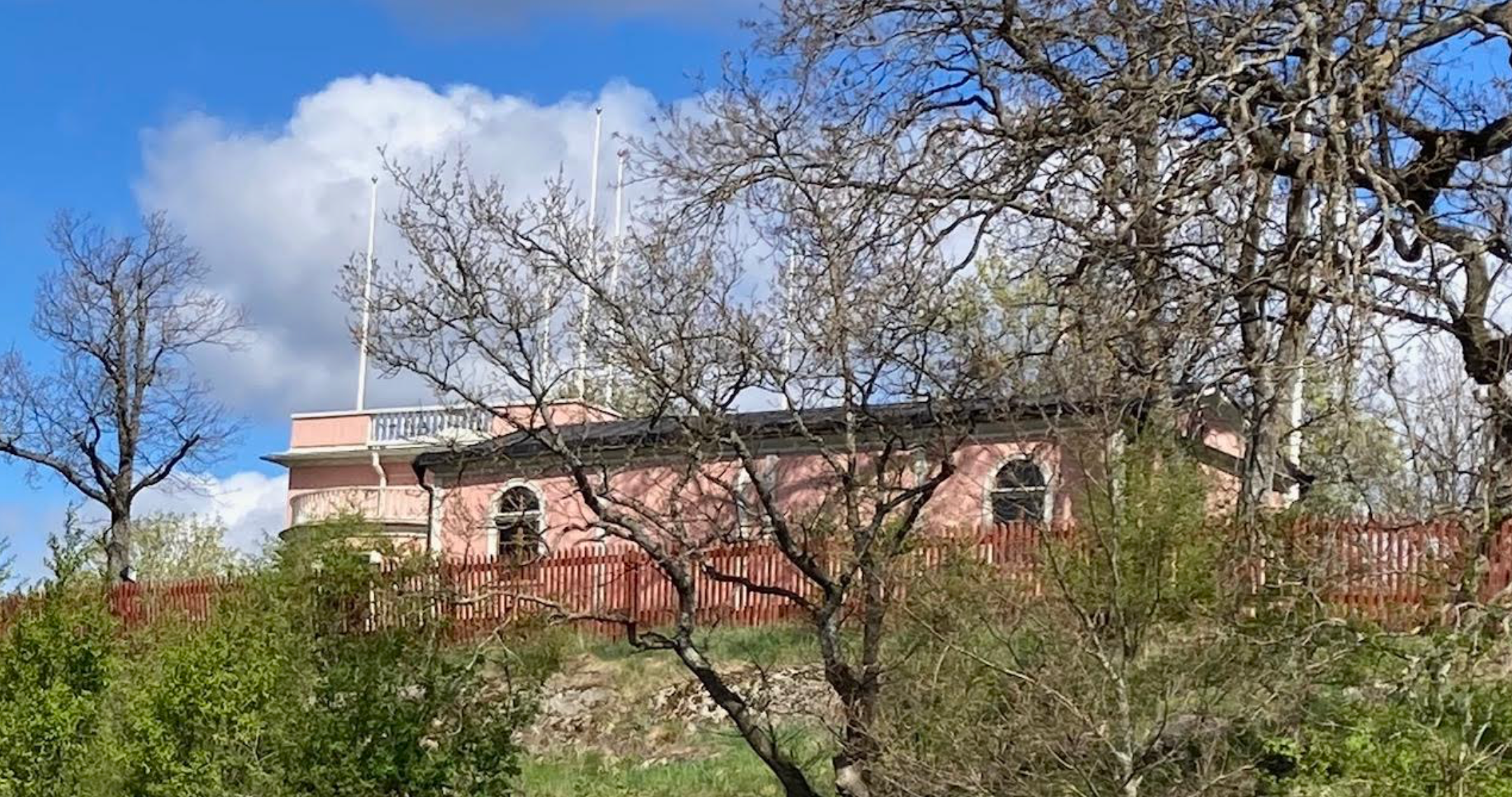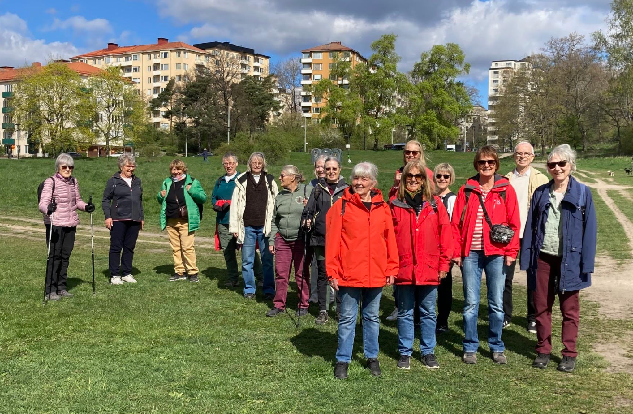 Denna härliga vårdag var vi 16 medlemmar som mötte upp vid träffpunkt Zinkensdamms T-bana för att under Britts ledning ta oss till Gärdet där veckans vandring startade. Vid Kungliga Borgen stannade vi upp för historisk återblick. Britt berättade att kung Karl XIV Johan lät uppföra Borgen 1818–1822 och fungerade som kungens rastplats. Han bodde där i flera veckor medan militära övningar pågick på Ladugårdsgärdet. På Borgen gav man också baler och supéer för förnäma gäster och när det var kungens namnsdag hölls supé för allmänheten. År 1977 brann Borgen ner till grunden, då byggnaden var så unik med sina karakteristiska empirdrag uppfördes en exakt kopia 1982.