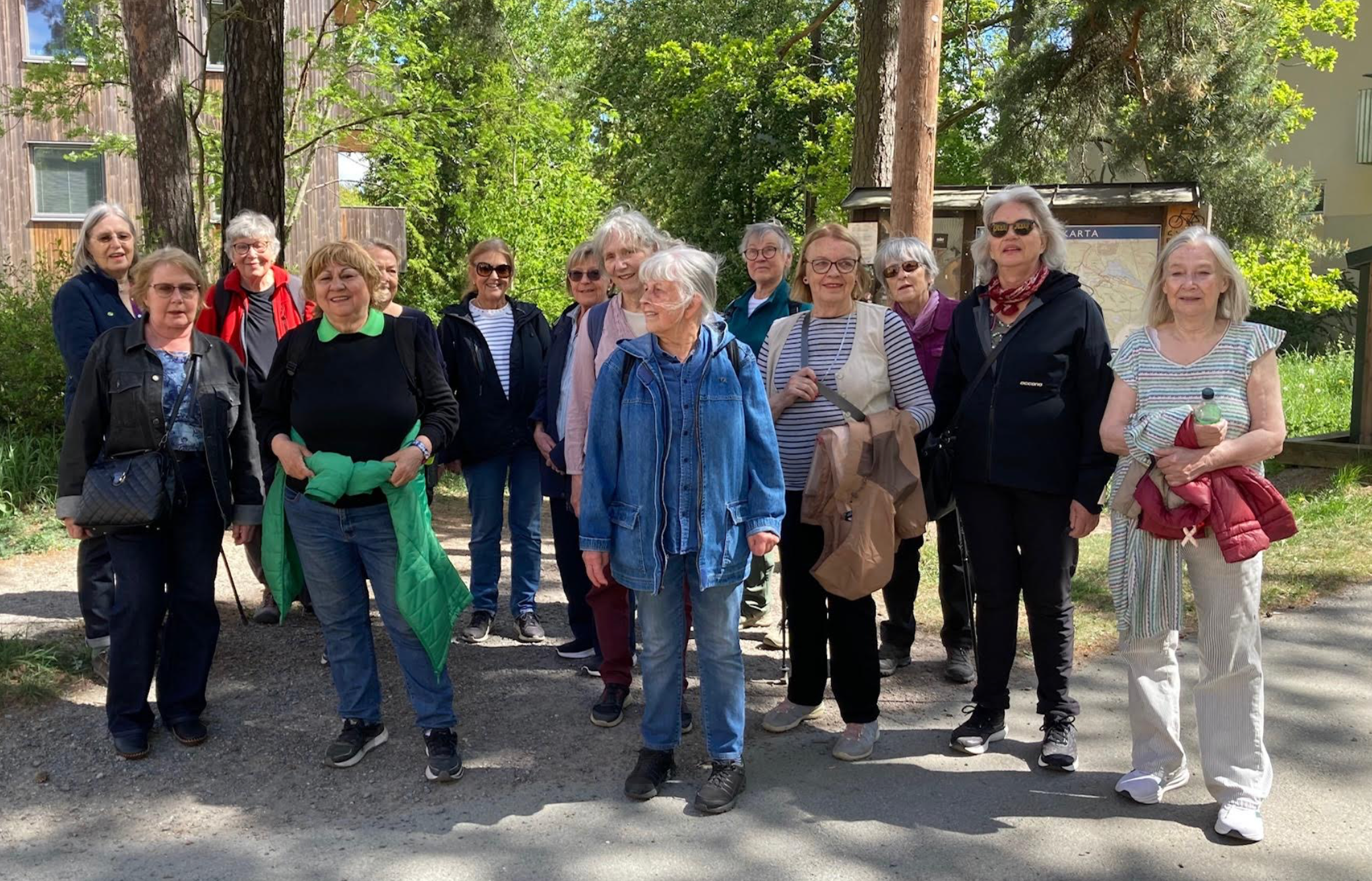 Vårens sista vandring utgick från Björkhagen med en liten instickare i Nackareservatet. Därefter via Hammarbyhöjden till Gullmarsplan. Sträckan var lite kortare än vanligt, 4,5 km, då vi i stället för att ta matsäckspaus halvvägs avslutade med lunch på Restaurang Skanskvarn. Carina Agardsson ledde de 16 glada vandrarna denna soliga majdag.