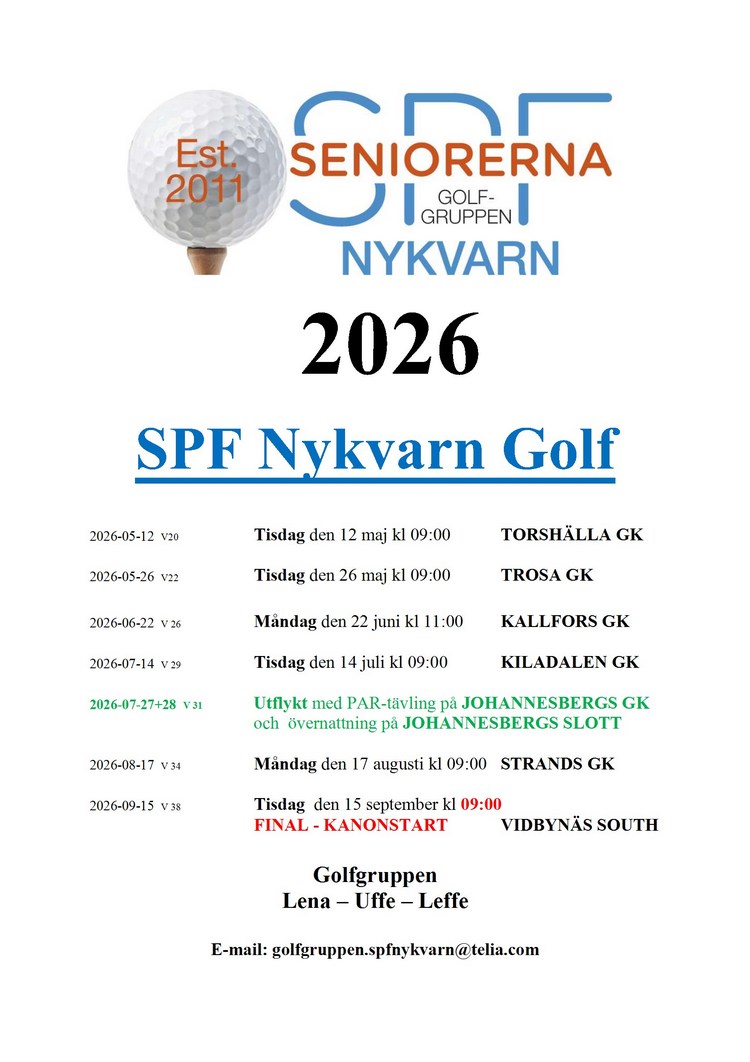 För kännedom vill vi informera att för att få deltaga i våra golftävlingar, måste man vara FULLVÄRDIG medlem i SPF Seniorerna Nykvarn. Den principen har vi haft sedan vi startade golfverksamheten i Nykvarn 2011 och denna ämnar vi fortsätta med. Det innebär också att vi inte tillåter spel för de personer som valt "vänmedlem/associerad medlem" även om man är fullvärdig medlem i en annan SPF-förening.