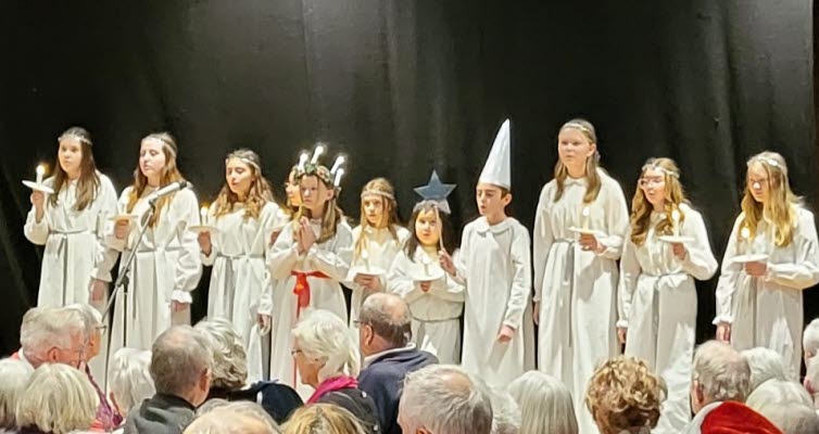 Glögg och pepparkaka serveras vid ankomst. Turinge-Taxinge Spelmän kommer att underhålla oss med musik. Det blir också Luciatåg med kyrkans ungdomskör ”Tondropparna”.