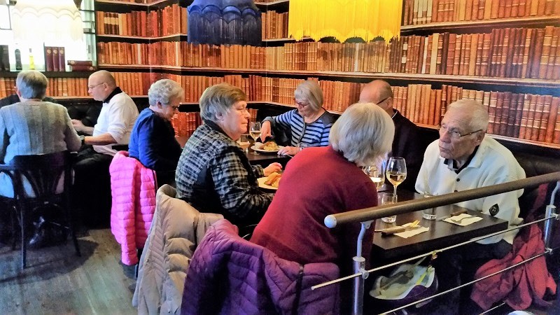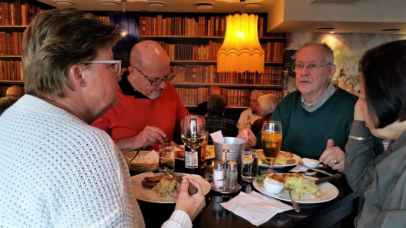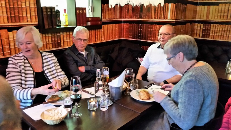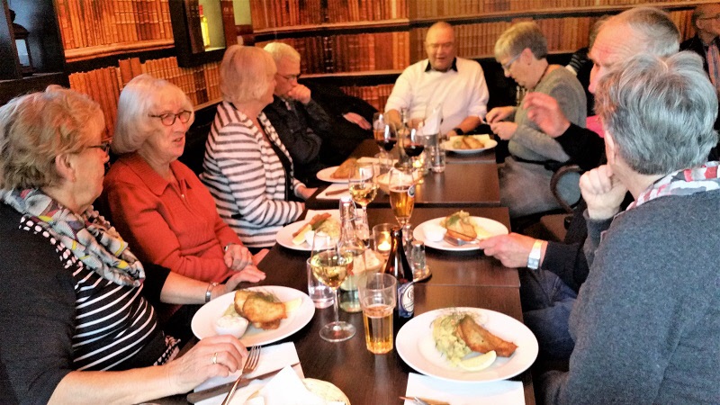 Vi var c:a 25 personer som träffades på Mingel,vi serverades Rödspätta stompad potatis,bacon och remouladsås det smakade jättebra och det var god stämning.