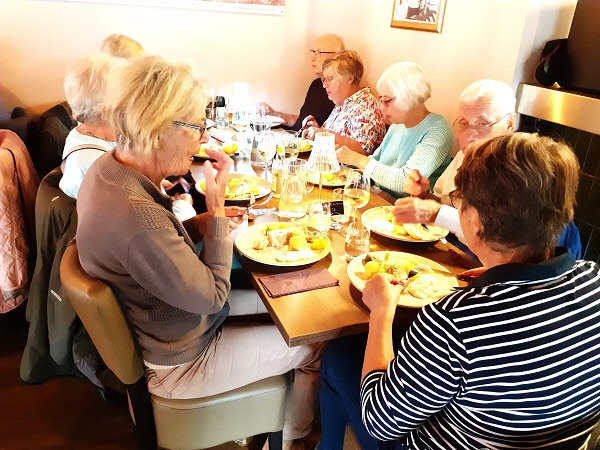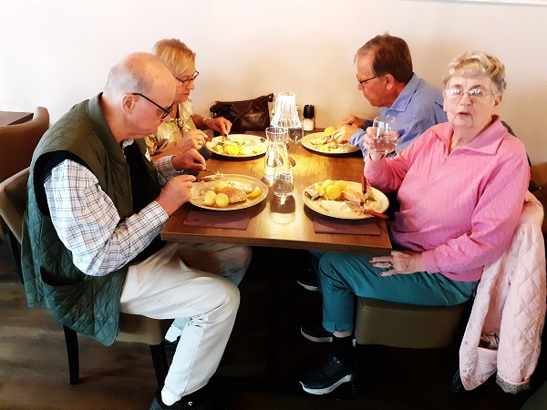 Vi var c.a 30 personer som träffades på Great Plate och åt lax med god sås med dricka till ,sedan fick vi kaffe för den som ville.Det var en trevlig stund.