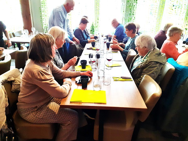 Vårsäsongens sista Pub-träff vi var ett tjugotal som träffades och åt kyckling med ris samt dryck .Restaurangen bjöd på kaffe med god kaka.